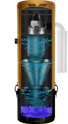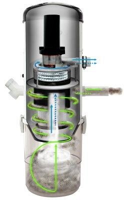 Zasada działania pełnego cyklonu opiera się na inteligentnym procesie, w którym powietrze wraz z zanieczyszczeniami przepływa do komory jednostki centralnej i wpada w jednostajny ruch wirowy. Dzięki sile odśrodkowej, cząstki brudu ulegają wytrąceniu i opadają na dno zbiornika, pozostawiając powietrze wolne od zanieczyszczeń, które jest odprowadzane na zewnątrz urządzenia.
